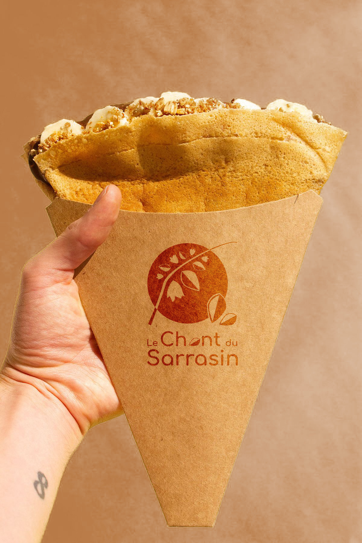 Pour accompagner le lancement de ce projet gourmand, j’ai imaginé une identité visuelle simple, élégante et sincère, centrée sur la fleur et la graine de sarrasin — cœur de la matière première.